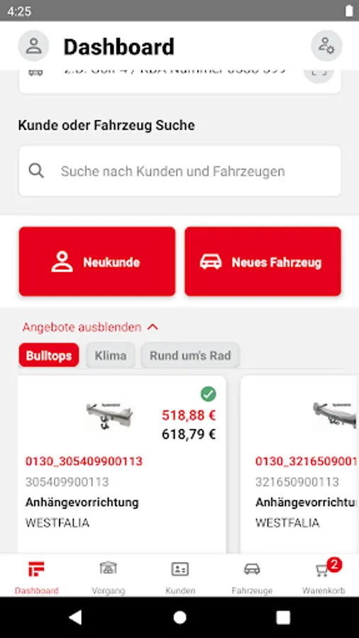 The NEIMCKE BULLKAT app is your ideal complement to your NEIMCKE BULLKAT package (basic, pro or power) to identify and order car parts with your mobile devices. The app is suitable for use in the workshop as well as in the trade.
