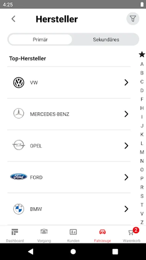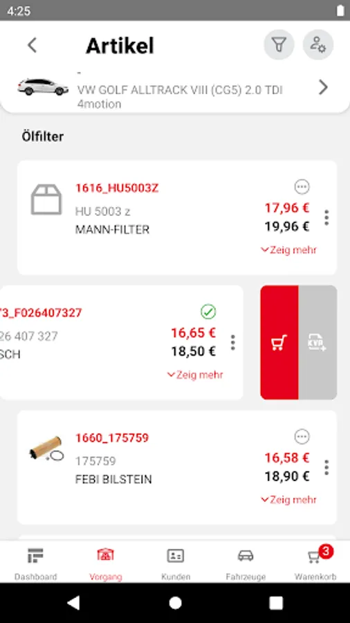 Find articles easily via the automatic barcode capture of your mobile device or search directly by manufacturer article number, OE comparison number or use number.