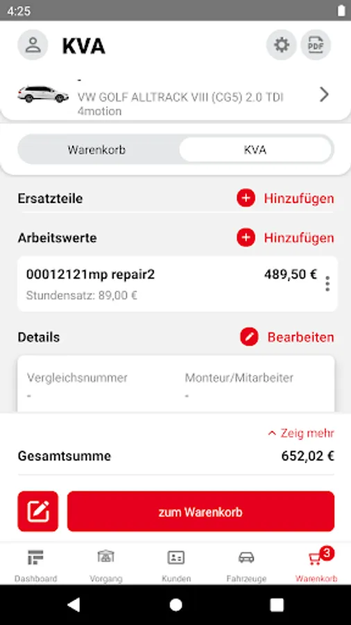 Benefit from the perfect interaction between the browser version of your NEIMCKE BULLKAT package and the mobile application on your mobile device. In this way, processes can be edited simultaneously in both versions. For example, start a process on the desktop and add spare parts on the mobile device while inspecting the vehicle.