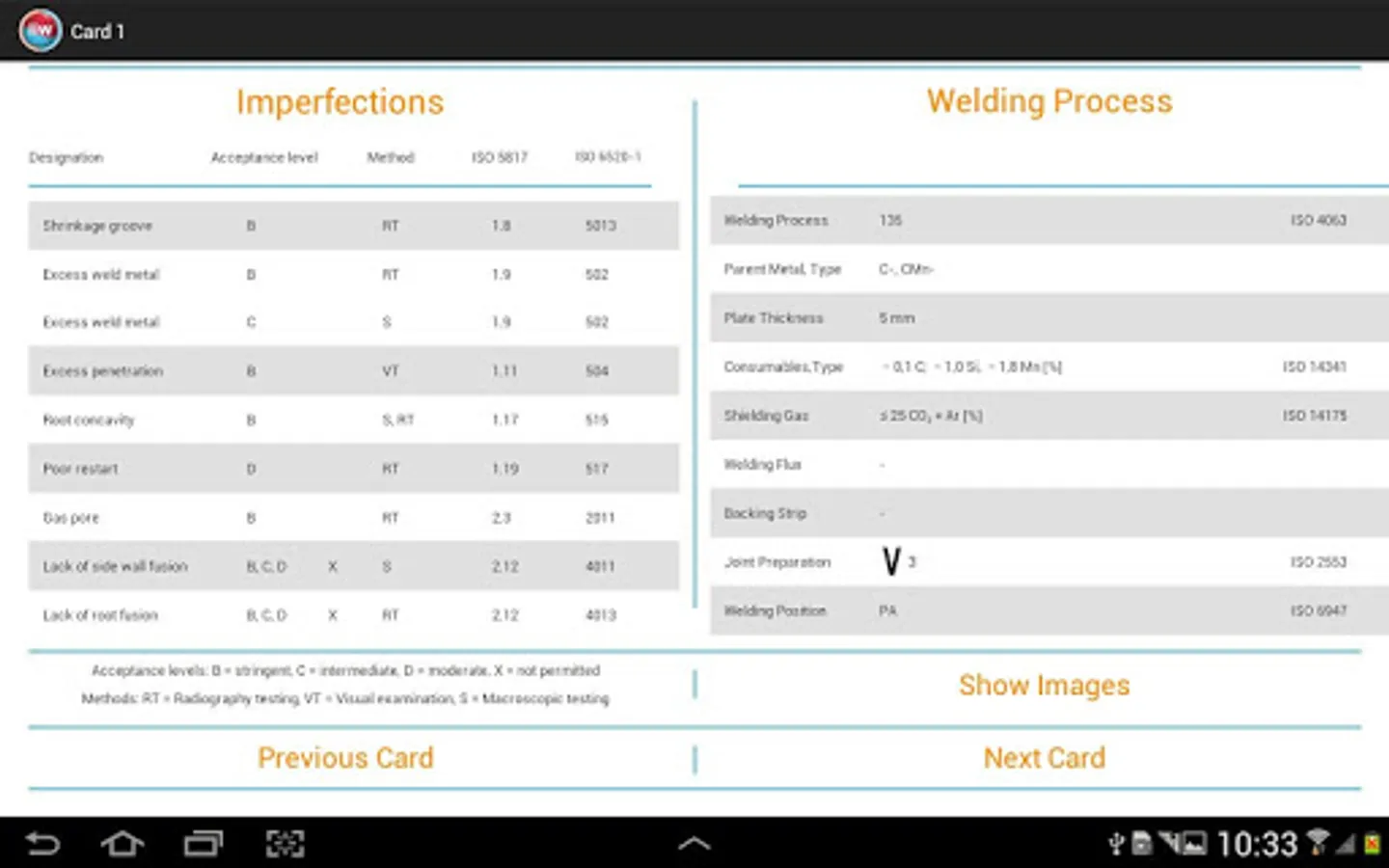 The app is useful for the circle of people who are not yet practiced in implementing the limiting values stipulated in the standard for the individual case. For example, the reference cards are used in order to teach them how to correctly interpret the various imperfections and their specific appearances on the radiograph and how to categorize them on a quality level of the standard according to their sizes. The app also serves the manufacturers, the operators and the testing agencies as an aid and a decision-taking means for the evaluation of welds in fabrication. It relates to individual welds and not to a product or a whole component. Thus, it is possible to make distinctions with regard to the quality levels for the respective welds on one component.