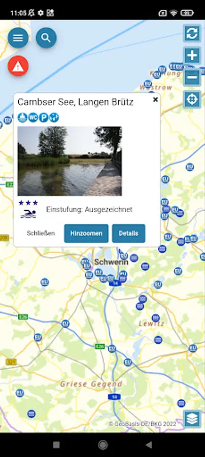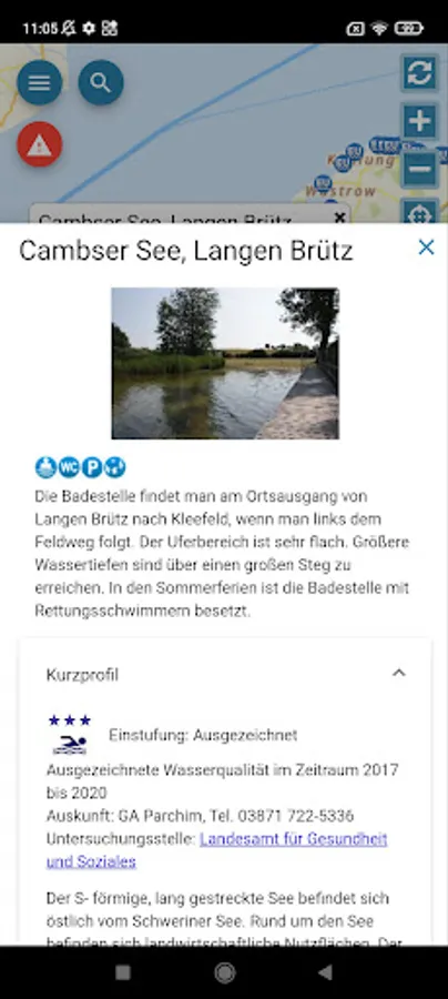 A search function enables you to find the shortest route from your current location to the nearest bathing area. The official bathing water map of Mecklenburg-Western Pomerania is a must for all water lovers and those looking for relaxation.