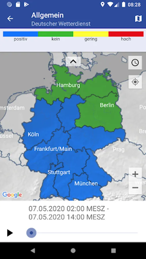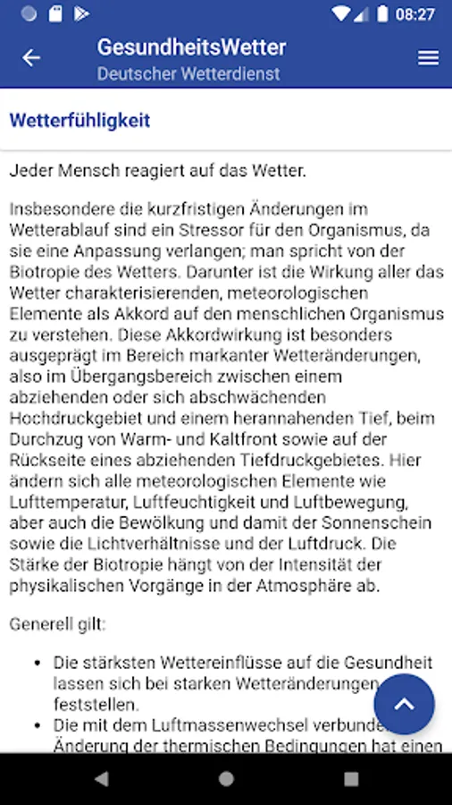 The health weather app of the DWD provides the health system, particularly affected people and risk groups, as well as the general public with the current warning and weather situation in relation to the current health effects.