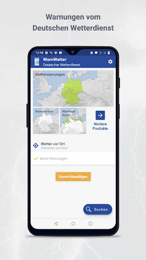 • Social media sharing function for sharing information from the WarnWetter App e.g. via Facebook, Twitter or e-mail.