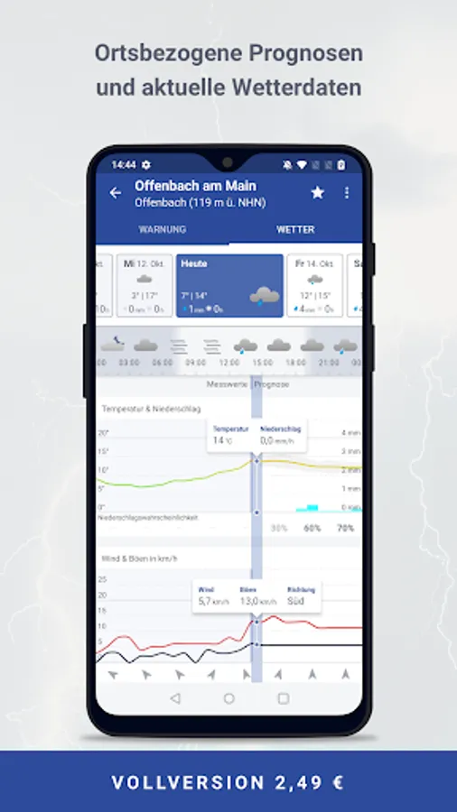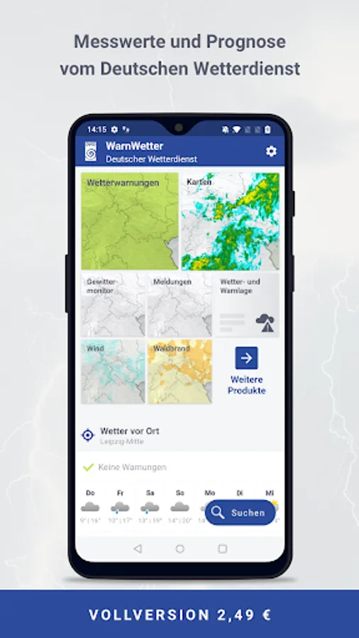 For a one-time fee (in-app purchase) the WarnWetter App can be expanded to a full version including the following functions: