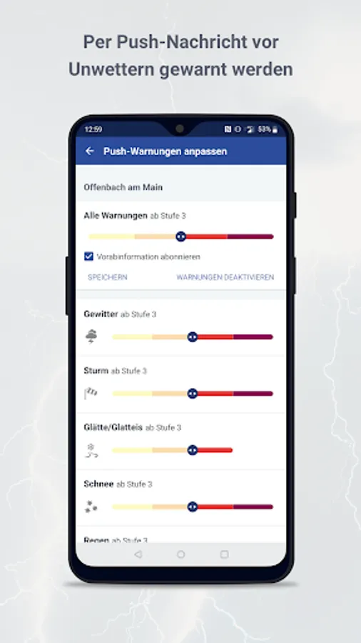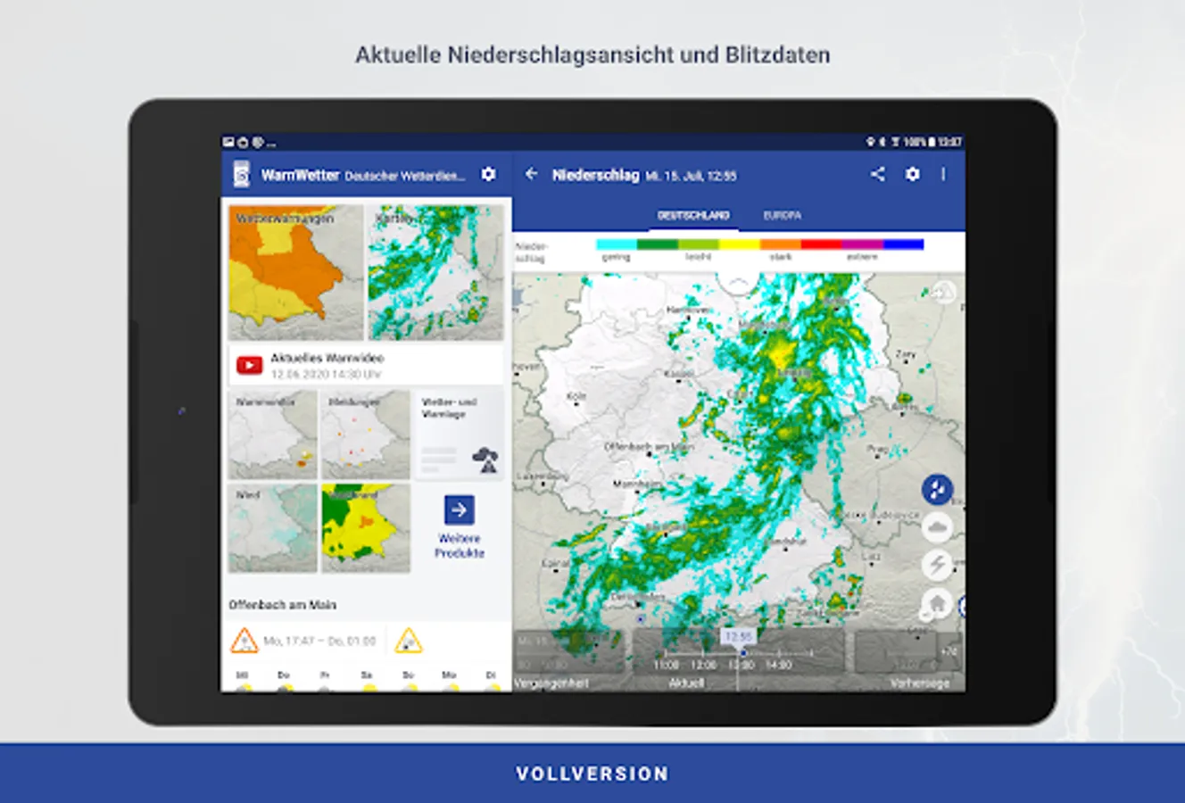 Note: The in-app purchase can be used on multiple devices with the same account. The range of functions differs in older versions of the WarnWetter App.