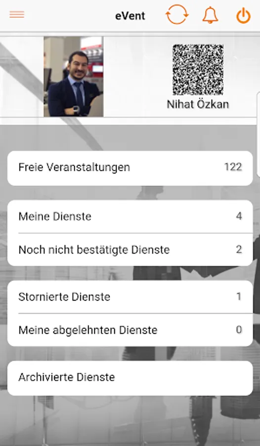 · Your personal "boarding pass" -> ID function by photography, personnel number and QR code to display your next service (just click on the QR code)