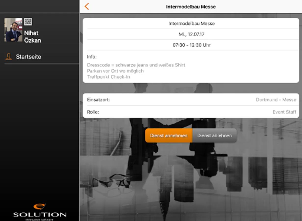 According to his abilities (skills), every employee is recognized using its locality. occupy must manage unoccupied shifts (for example, due to illness, vacation, increased workload, seasonal work or project work), these layers are entered on the PC to the Windows Software e-Staffing and put online. Any employee who is stored in this system, can now be seen via the e-StaffingApp which is relevant to them shifts are to be filled. An overview of adopted layers or - the employer - canceled shifts, are available as well as the opportunity to have an entry in waiting or Nachrücklisten. Easy anytime, anywhere accept work shifts and manage!