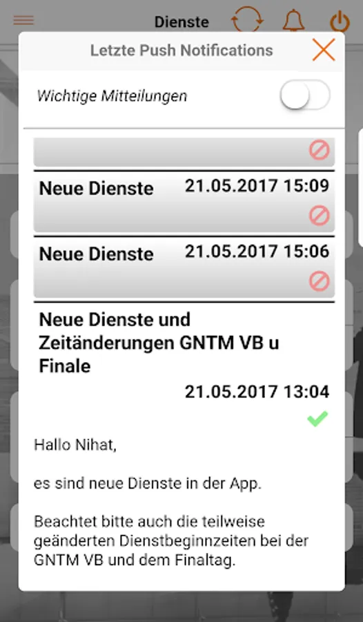 · Now you can reject where you swipest an event to the left and then click on the 'X' all the services of a whole event
