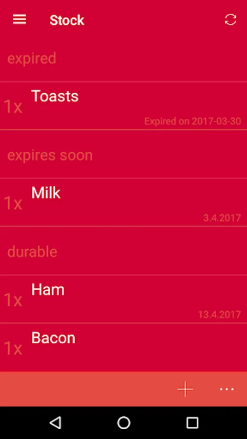 All functions of the app are intertwined, purchased products appear immediately in your stock, optionally also with shelf life.