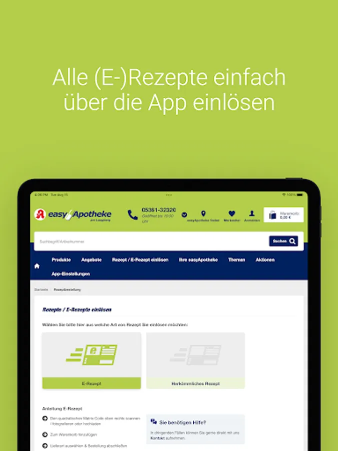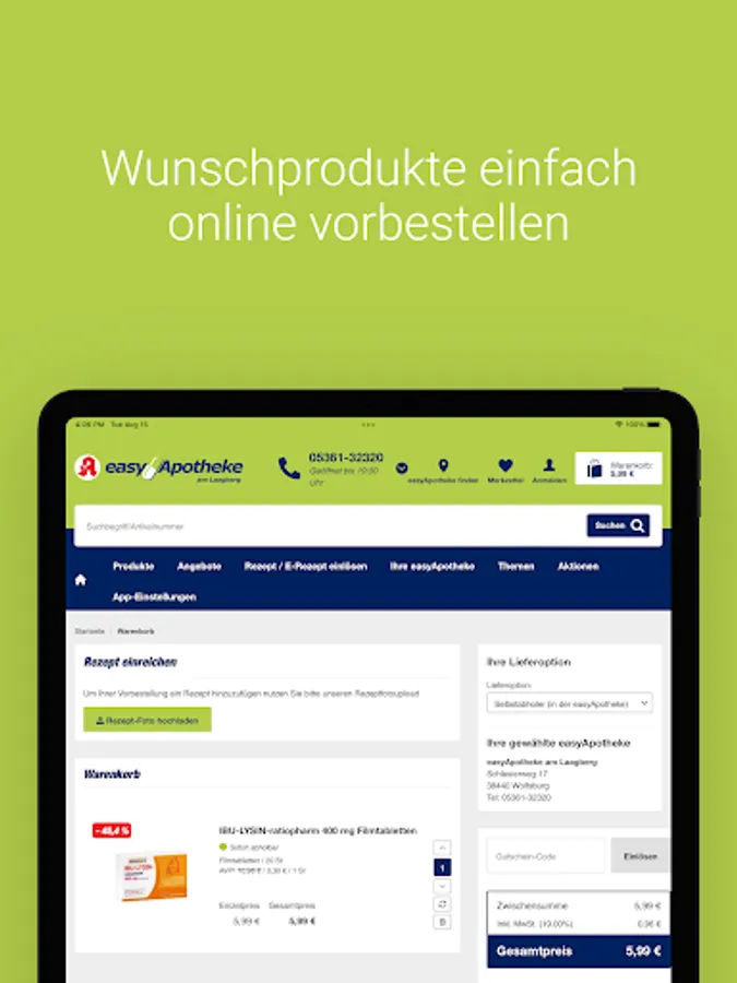 Further information about our services and payment methods is available in our Click & Collect shop at www.easyapotheken.de and on site. Dispensing of prescription medicines only upon presentation of the original prescription.