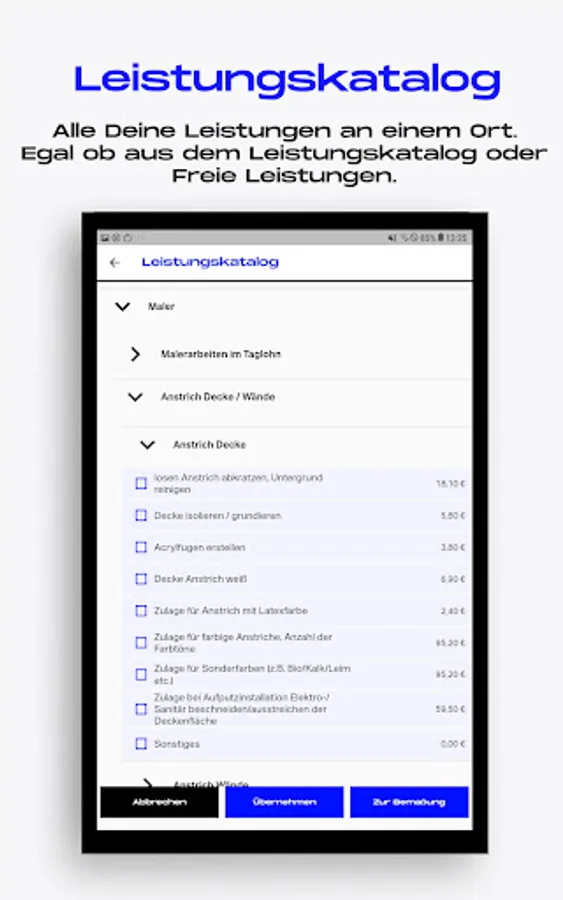 The cloud-based system solution was implemented from practice for practice and is ideal for small and medium-sized craft businesses - regardless of whether you are a professional in one trade or work across trades. Thanks to its comprehensive functions, the clever craftsman software is perfect for floorers, roofers, window fitters, tilers, gardeners and landscapers, plasterers, plumbers, painters, bricklayers, metal workers, carpenters, drywallers and many more.
