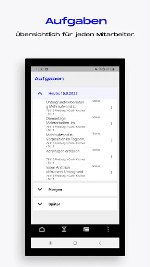 EasyWorx is your digital tool for efficient construction site management. Thanks to the intuitive use of our tradesman software and comprehensive functions, mobile order processing becomes child's play. So that there is time for what is important – your craft. your customers.