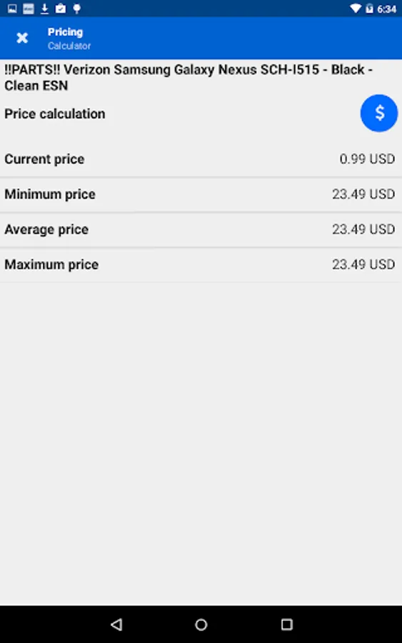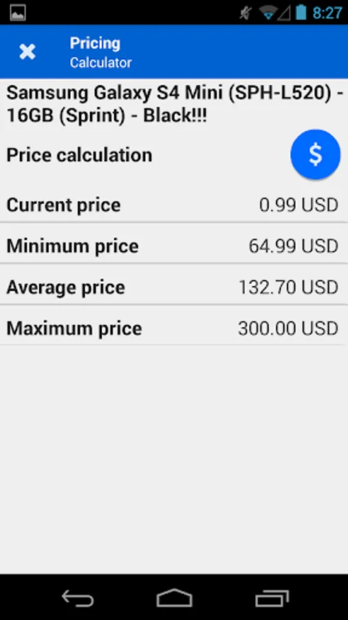 Pricing calculator to present a simple, live report on the average, maximum and minimum price.