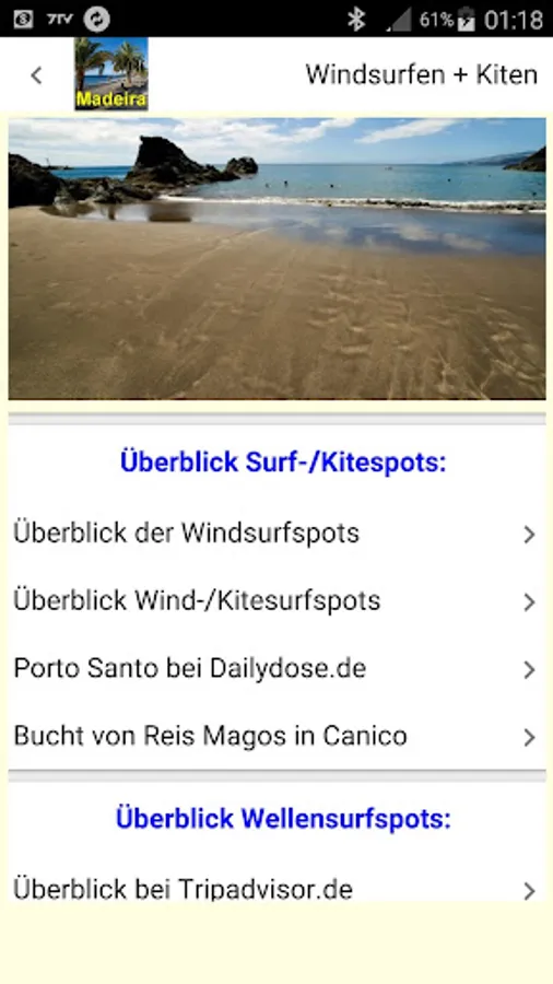 The app for the island of Madeira in the Atlantic and Porto Santo is particularly suitable for all water sports enthusiasts (especially sailors, kiters, wave and wind surfers) but also very helpful for "non-water sports enthusiasts" among holidaymakers and residents and "sun worshipers". It offers extensive information on weather, wind, beaches, surfing and kite spots, traffic, restaurants, campsites and other accommodations, events etc. This app is being further developed and we look forward to your suggestions.