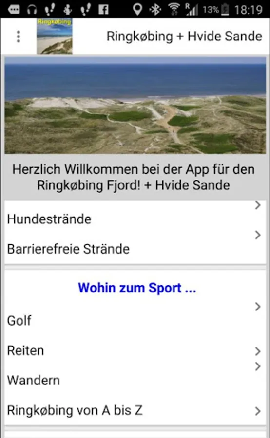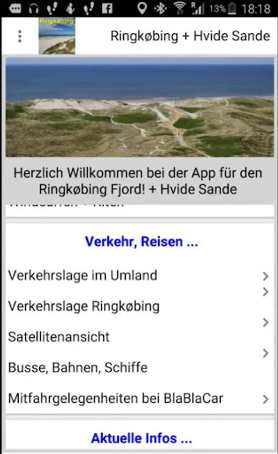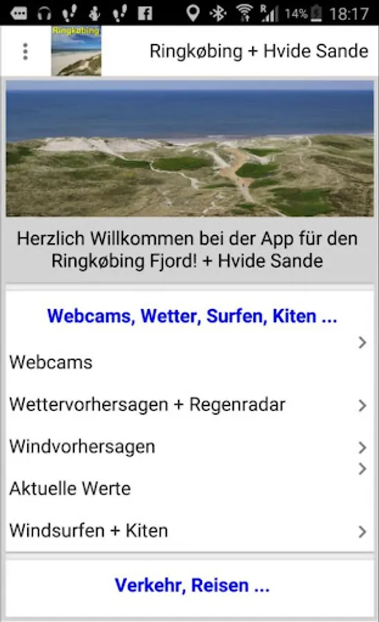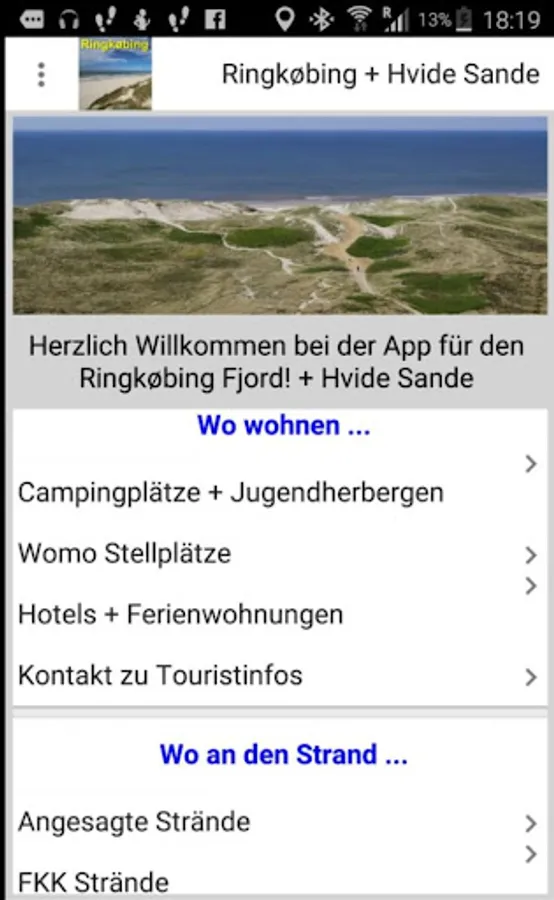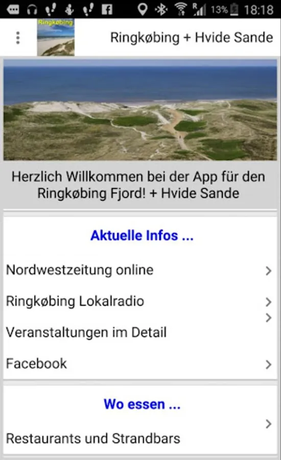 The app for the North Sea coast around your Ringköbing Fjord (Danish: Ringkøbing Fjord) is particularly suitable for all water sports enthusiasts (especially sailors, kiters, wave and wind surfers) but also very helpful for "non-water sports enthusiasts" among holidaymakers and residents and the "Sun worshipers". It offers extensive information on weather, wind, beaches, surfing and kite spots, traffic, restaurants, youth hostels, campsites, holiday apartments, hotels, events etc. This app is still being developed and we look forward to your suggestions.