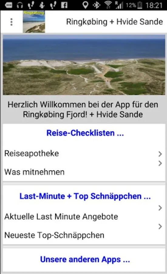 The app also contains a collection of relevant websites for the region and gives you the option of accessing all the information that is interesting for your stay at Ringköbing Fjord or for you from Denmark as conveniently as possible on the Internet: