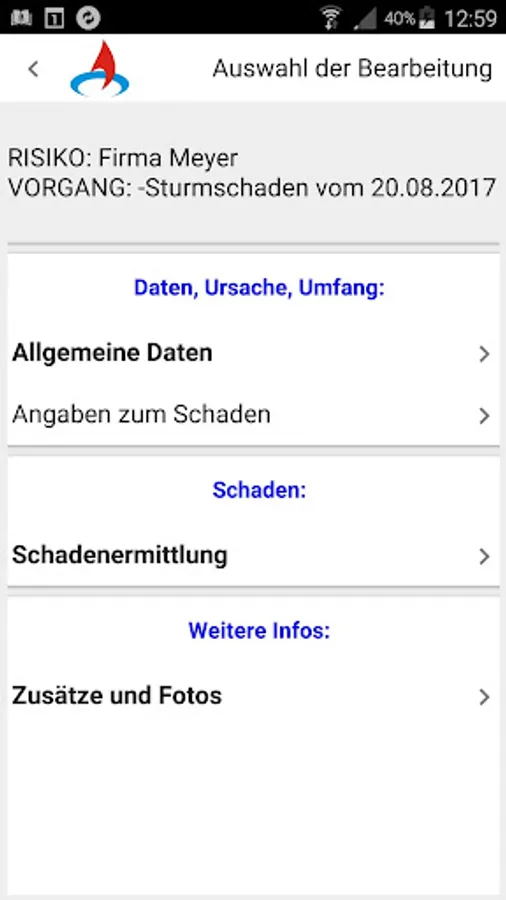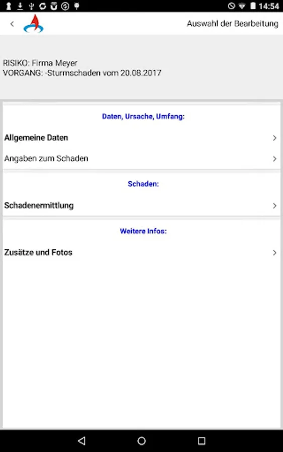 This damage appraiser app gives you the opportunity to carry out part of the work that you have previously done as part of claims processing on the desktop program under Windows on your smartphone or tablet on the go, directly at the damage location. In particular, you can in the app: