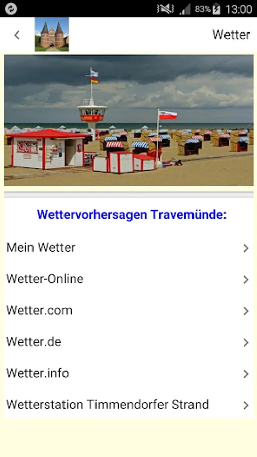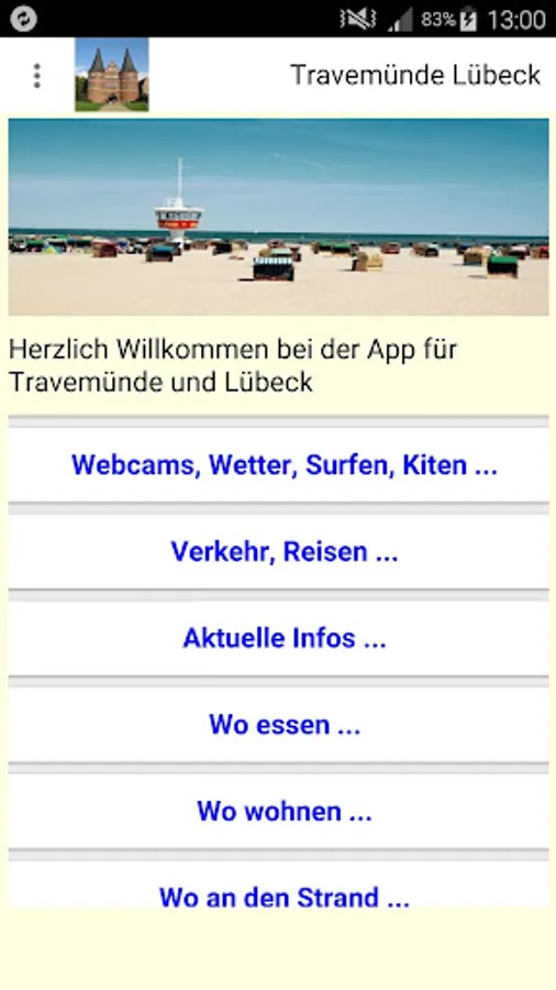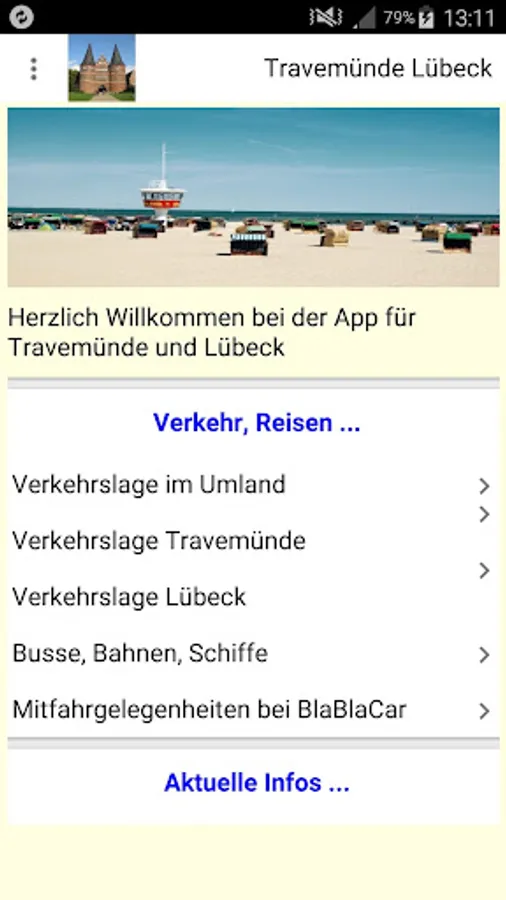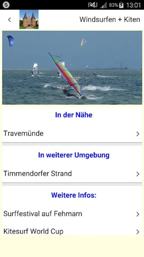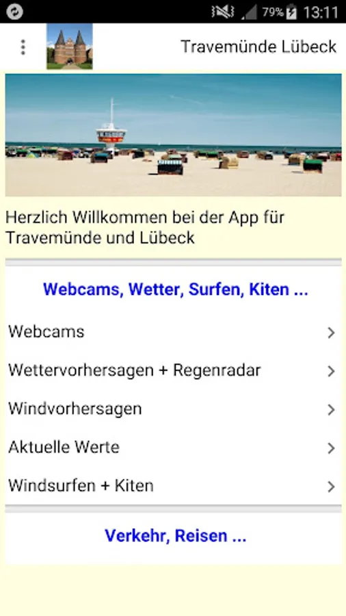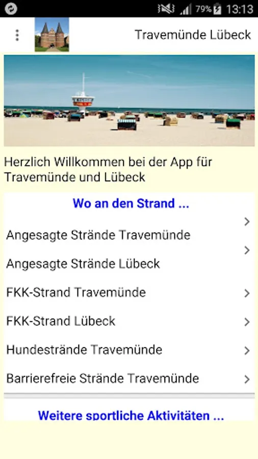 The app for the surroundings of Travemünde and Lübeck is particularly suitable for all water sports enthusiasts (especially sailors, kiters and windsurfers) but also very helpful for "non-water sports enthusiasts" among holidaymakers and residents and the "sun worshipers". It offers extensive information on weather, wind, beaches, surfing and kite spots, traffic, restaurants, the campsite and other accommodations, events etc. This app is being further developed and we look forward to your suggestions.