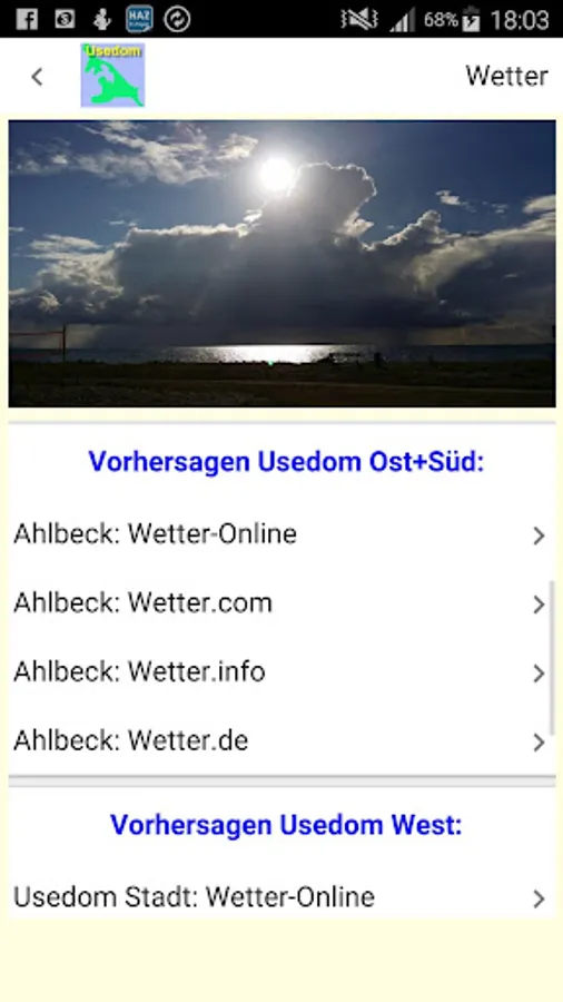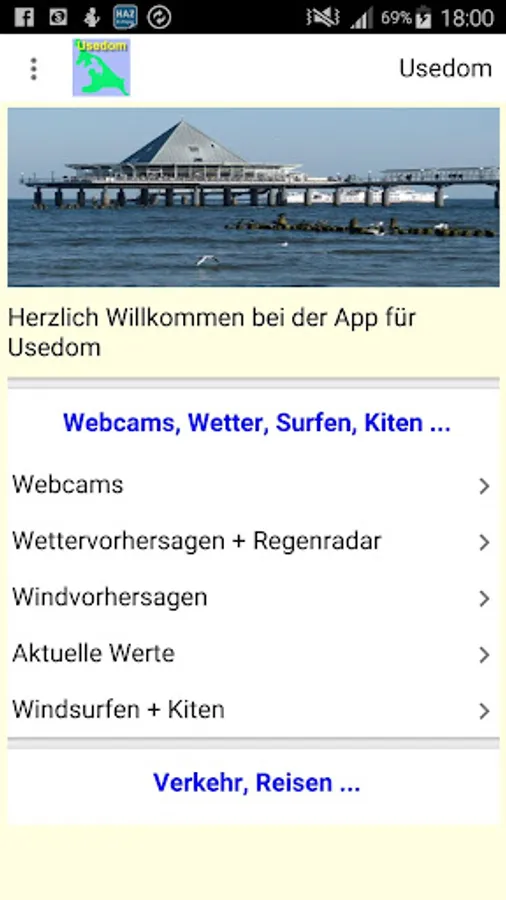 The app for the island of Usedom in the Baltic Sea and adjacent areas is particularly suitable for all water sports enthusiasts (especially sailors, kiters, wave and wind surfers) but is also very helpful for "non-water sports enthusiasts" among holidaymakers and residents and "sun worshipers". It offers extensive information on weather, wind, beaches, surfing and kite spots, traffic, restaurants, the campsite and other accommodations, events etc. This app is being further developed and we look forward to your suggestions.