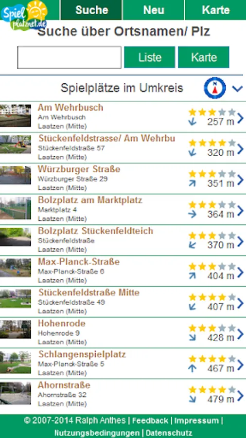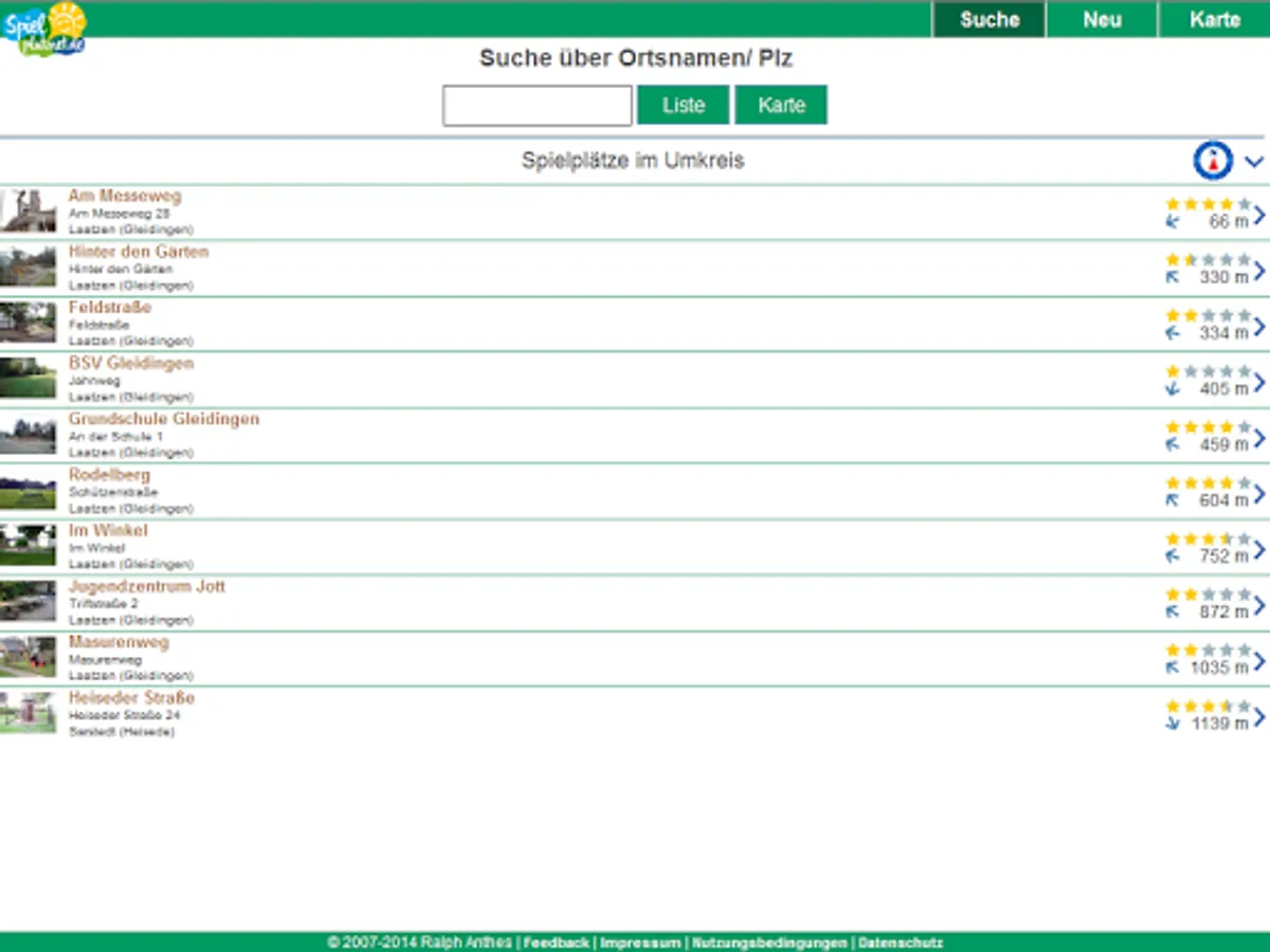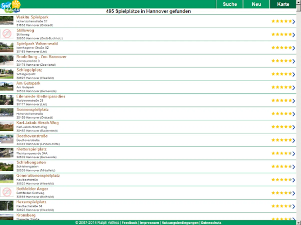 Search and find your favorite playground in Germany's largest playground catalog with over 78,000 entries! The playground app contains the following categories: