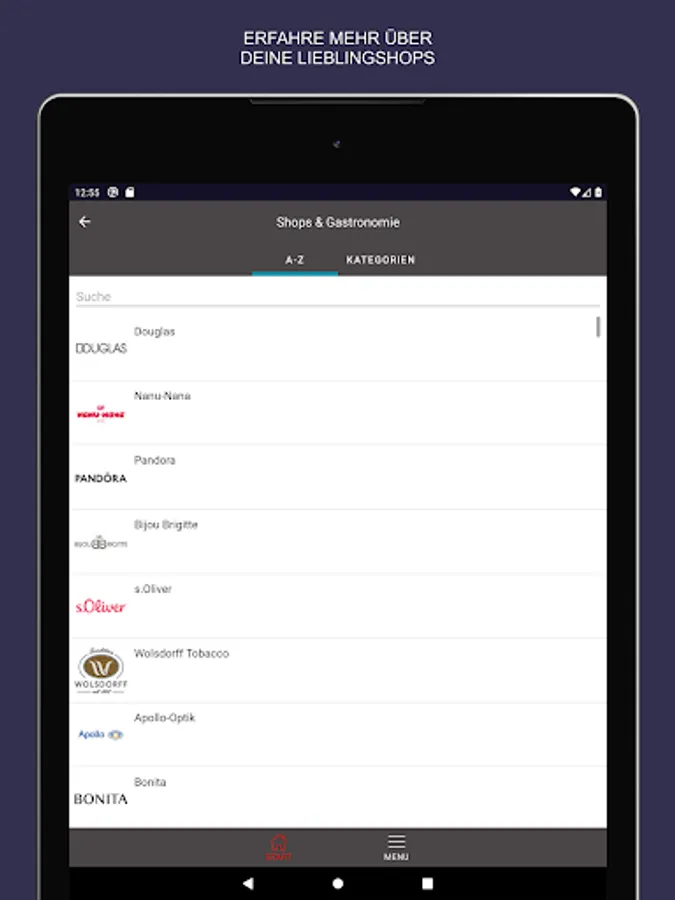 • The interactive center plan helps you to find the shops and restaurants in the center and shows you all opening times and contact details at the click of a button.