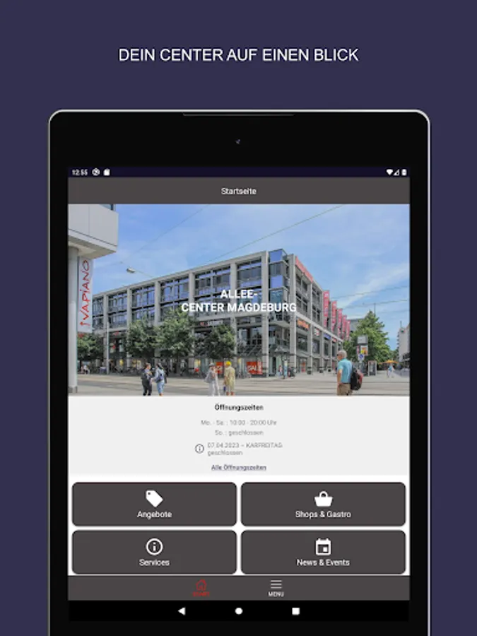 • Just like in a "digital shop window", you can see the trendy trends, fashion highlights and offers from the Allee-Center Magdeburg - wherever and whenever you want!