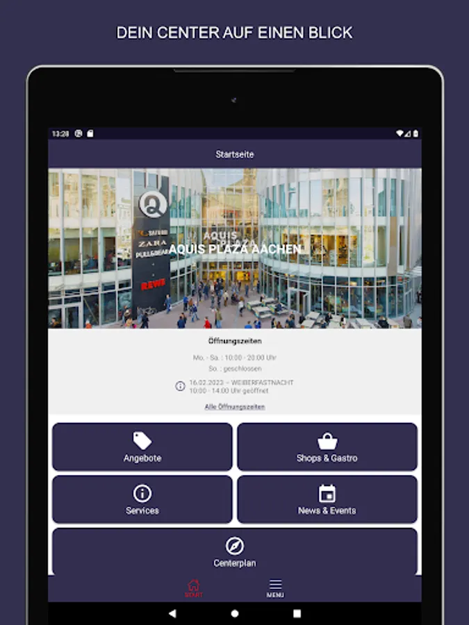 • Just like in a "digital shop window", you can see the trendy trends, fashion highlights and offers from the Aquis Plaza Aachen - wherever and whenever you want!