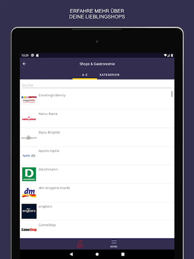• The interactive center plan helps you to find the shops and restaurants in the center and shows you all opening times and contact details at the click of a button.