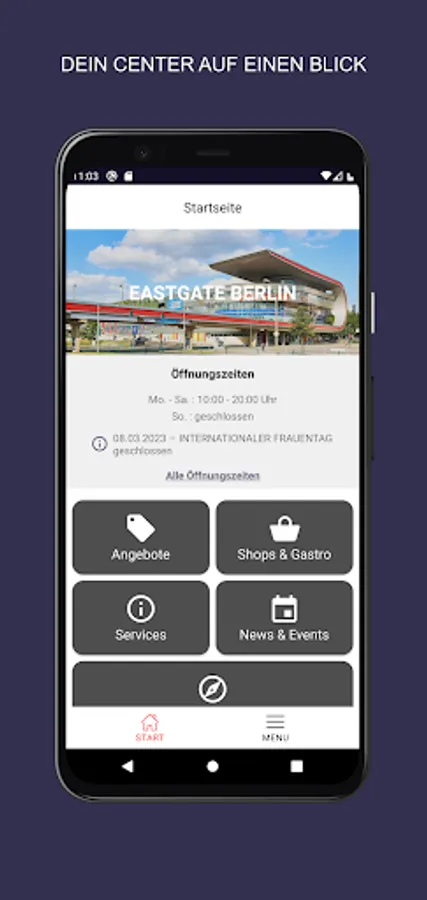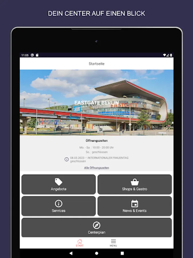 • Just like in a "digital shop window" you can see the trendy trends, fashion highlights and offers from Eastgate Berlin - wherever and whenever you want!