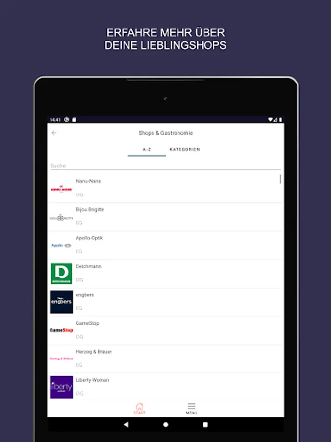 The interactive center map helps you to find the shops and restaurants in the center and shows you all opening times and contact details with one click.