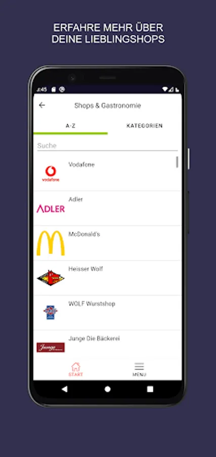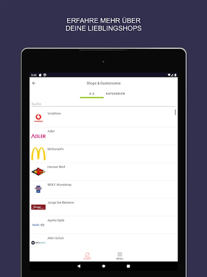 The interactive center map helps you to find the shops and restaurants in the center and shows you all opening times and contact details with one click.