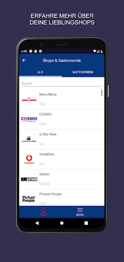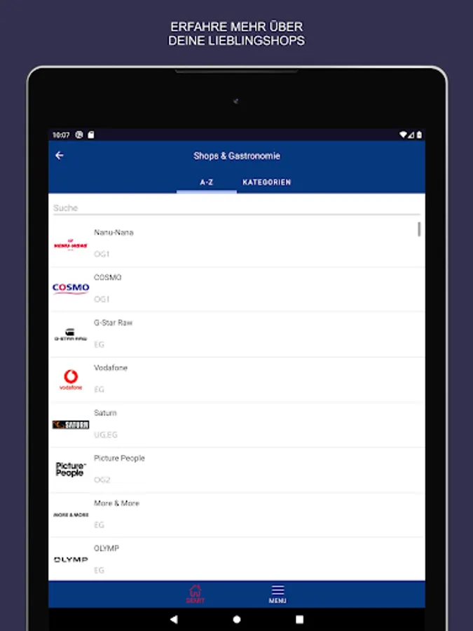 The interactive center map helps you to find the shops and restaurants in the center and shows you all opening times and contact details with one click.