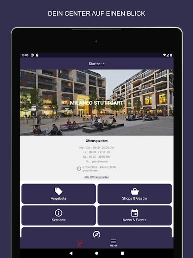 • Just like in a "digital shop window", you can see the trendy trends, fashion highlights and offers from Milaneo Stuttgart - wherever and whenever you want!