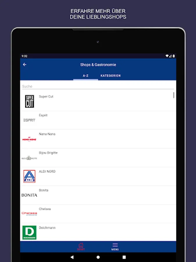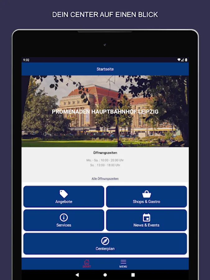 • The interactive center plan helps you find the shops and restaurants in the center and shows you all opening times and contact details at the click of a button.