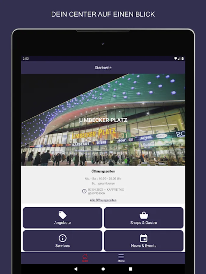 • Just like in a "digital shop window", you can see the trendy trends, fashion highlights and offers from Limbecker Platz - wherever and whenever you want!