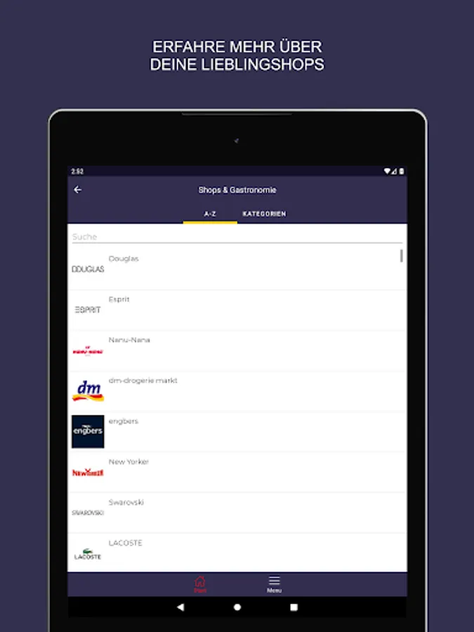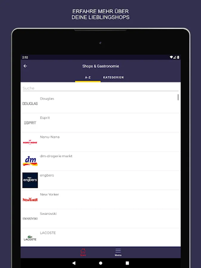 • The interactive center plan helps you find the shops and restaurants in the center and shows you all opening times and contact details at the click of a button.