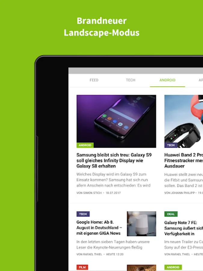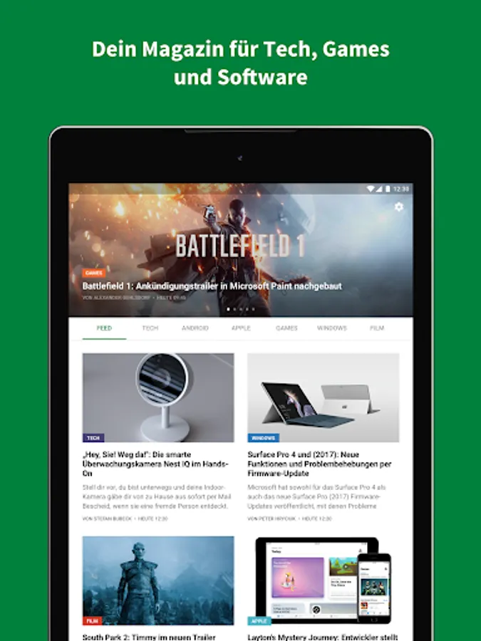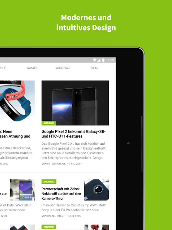 The content in the categories Tech, Android, Apple, Games, Windows and film you can filter with one click. The news you acknowledge large images.