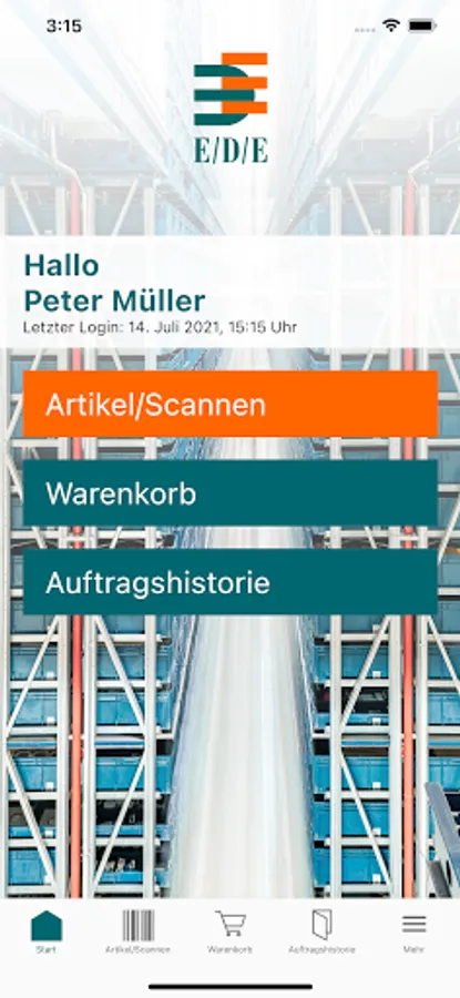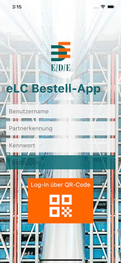 2. To log in, enter the user data from the E / D / E extranet or scan the QR code in the extranet under "System / Settings / eLC order app login"