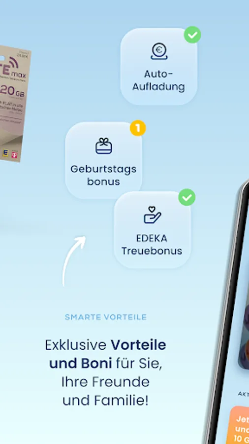 With the free EDEKA smart app, you can view and change all the important details about your EDEKA smart tariff at a glance.