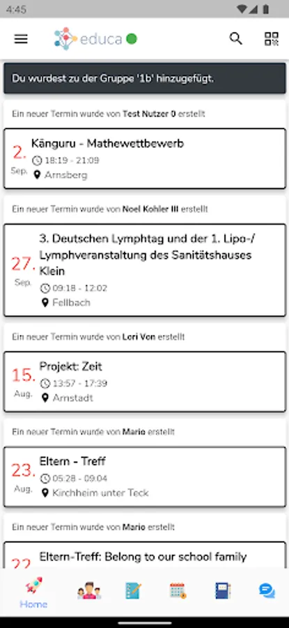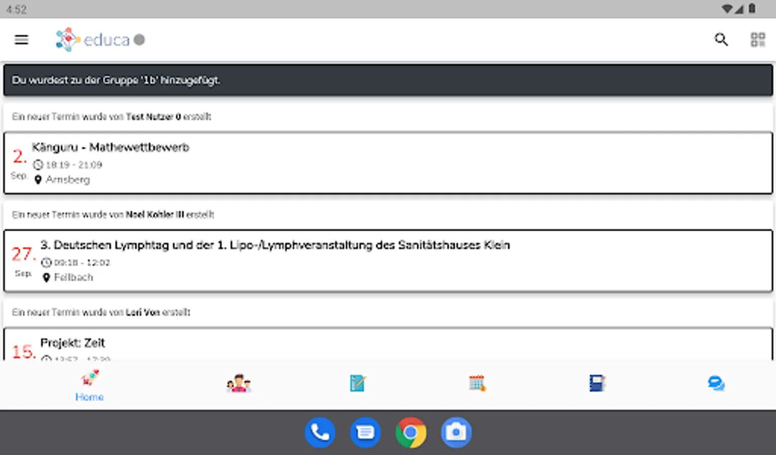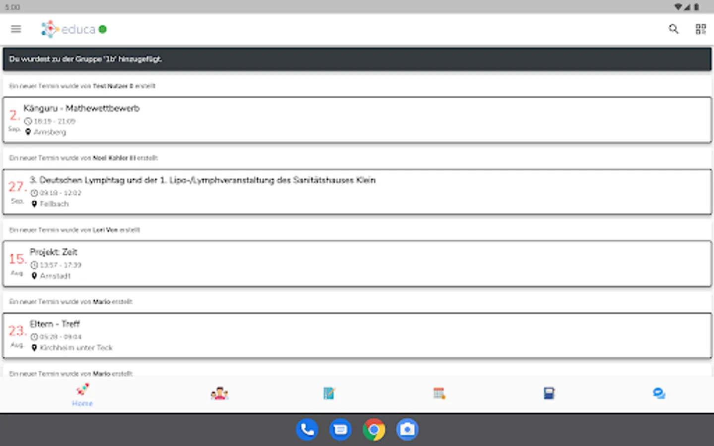 Whether it's a class lesson, private tuition or an afternoon program - appointments provide a basis for (digital) meetings and the appointment-specific exchange of information: logs and files can be linked. External participants can be invited easily and securely. Interfaces to the Outlook calendar are already integrated, we would be happy to add more (Webcal support).