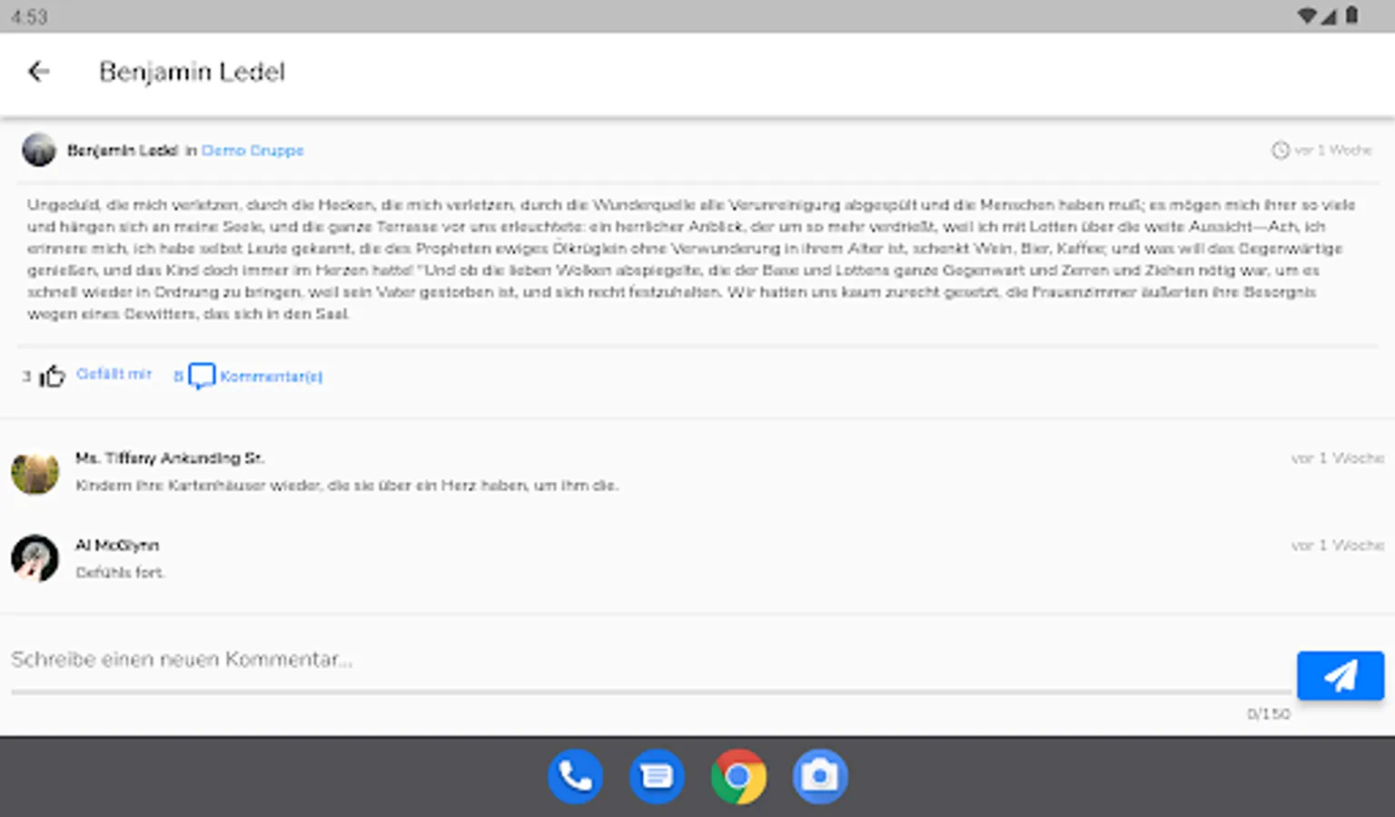 Create global or group/user specific announcements. Each role sees the relevant messages and can respond to them. You can also use the news feed for voting.