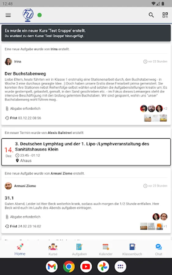 You will be informed directly about timetable changes and substitutions via push message. The new canteen plan, school events and news within the class – you can now find all of this centrally and within easy reach in the F+U app.