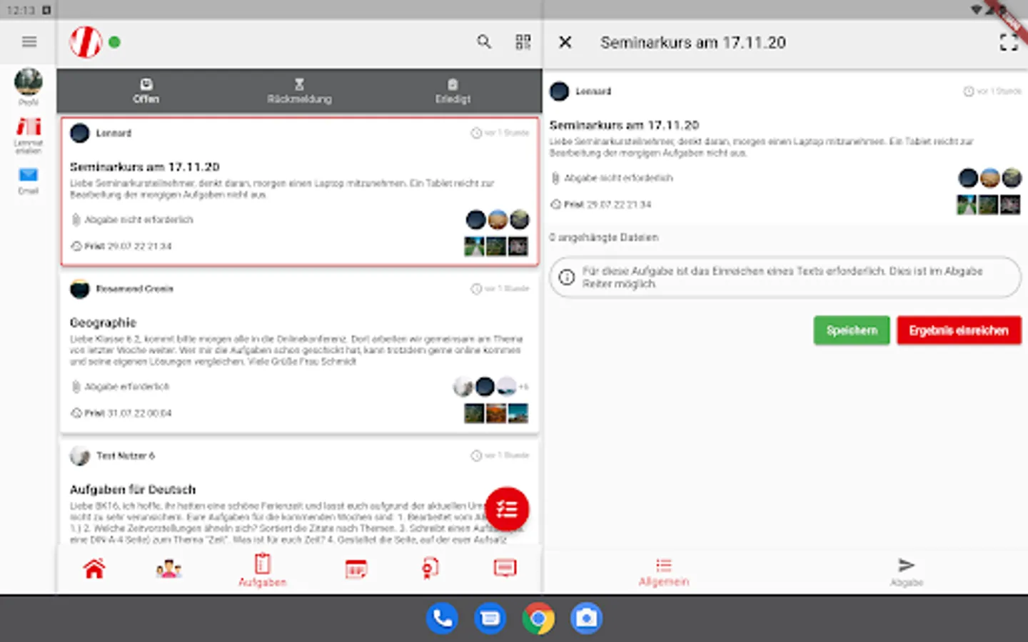 (Home)work can be created and processed completely paperless. Teachers create digital worksheets, optionally configure the correct answers, define deadlines and assign the tasks to entire groups or individual users.