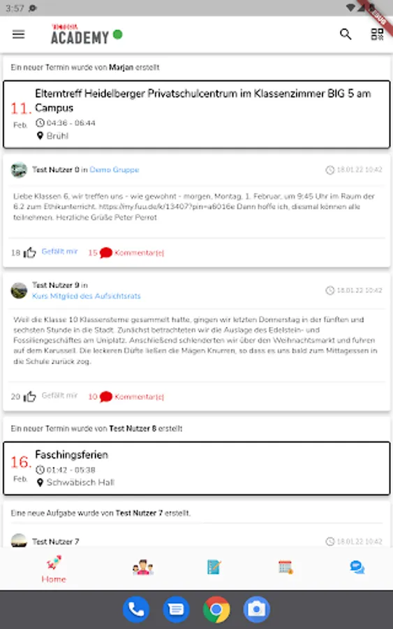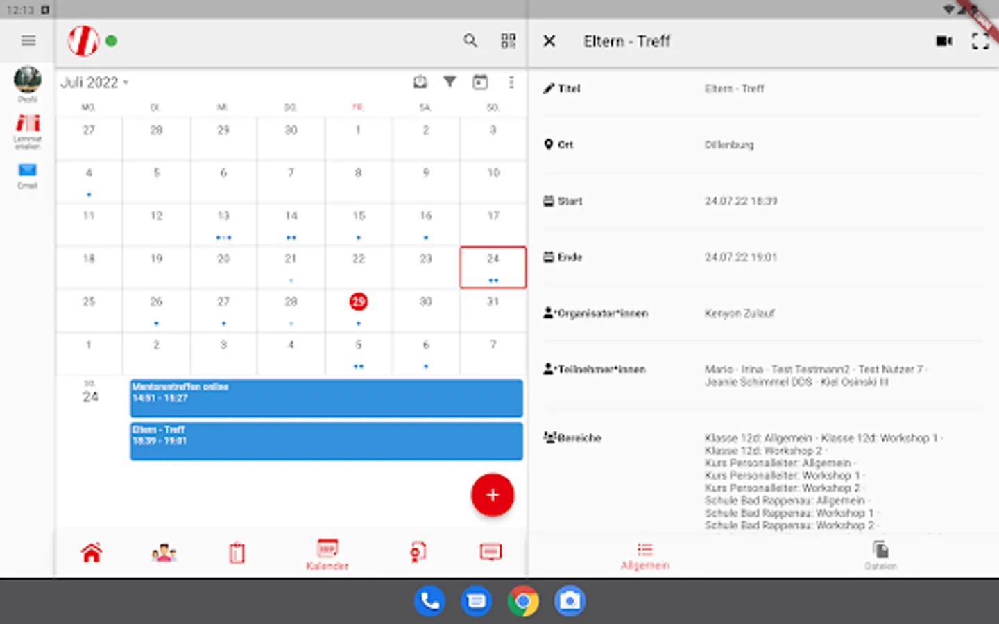 Whether it's a class lesson, private tuition or an afternoon program - appointments provide a basis for (digital) meetings and the appointment-specific exchange of information: logs and files can be linked. External participants can be invited easily and securely. Interfaces to the Outlook calendar are already integrated, we would be happy to add more (Webcal support).