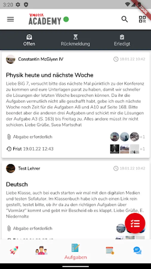 Is there a change in the substitution plan? Our intelligent software automatically recognizes which users the message must be sent to and informs them directly via push notification. You can also set up your own mailing list for each message and, for example, inform the whole school with just one click.