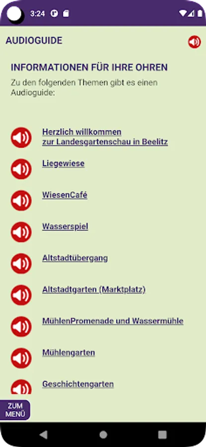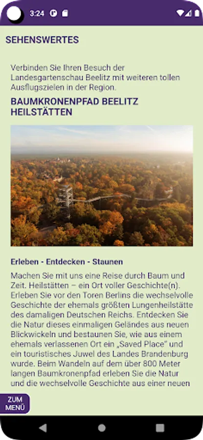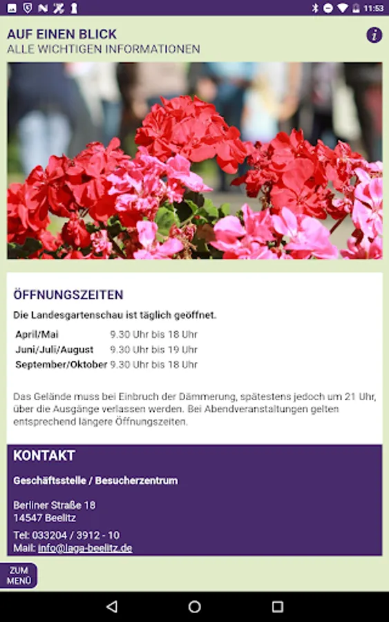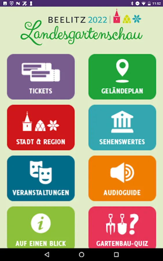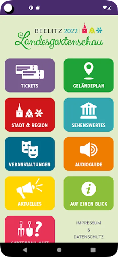 The official LAGA Beelitz 2022 app offers all information at a glance: site map with navigation and service information, event calendar with daily overview, ticket shop, audio guide and many other tips in and around Beelitz.