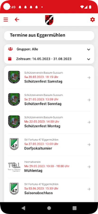 This app offers you comprehensive information about upcoming events of clubs, groups and associations in Eggermühlen. With just a few clicks you can select your preferred group and time period and discover all relevant dates in your area.