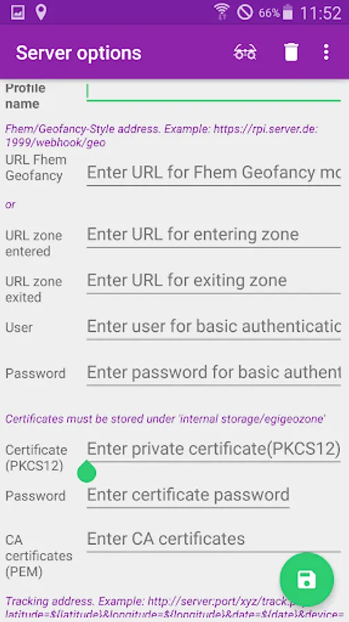 - Contact a geofencing service, such as the Geofancy module from FHEM, to control home automation devices, or call your own URLs when entering or leaving a zone.
