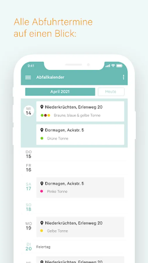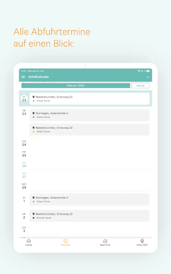 The new address management makes it possible to enter several addresses. So you can be reminded for different locations. Or manage the empty times for relatives or tenants.
