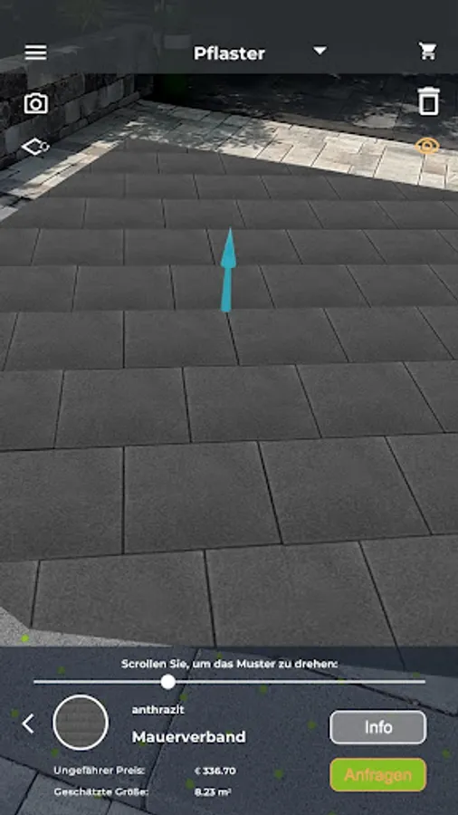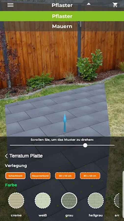 Simply scan your surroundings with the camera of your smartphone or tablet. Mark an area on your touchscreen and choose a stone and a color. The app will then show you a 3D model of the stones installed in your garden.